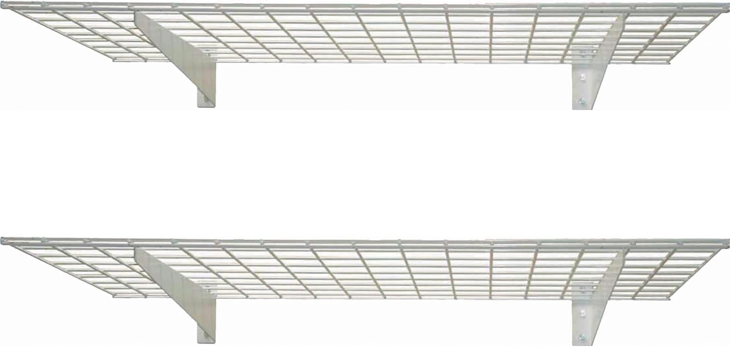 00630 2-Pack Heavy Duty Steel Wall Garage Shelving, 48-Inch X 24-Inch Wall Mounted Shelves for Garage Storage, Low-Profile Brackets, Max Shelf Load 150 Pounds, White Powder Coated Finish