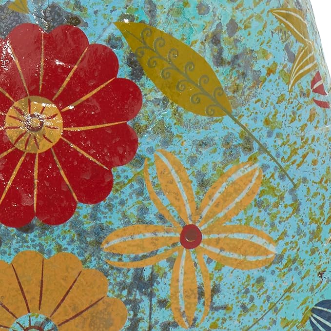 - Style : Standing Blue Metal Rooster with Colorful Flowers