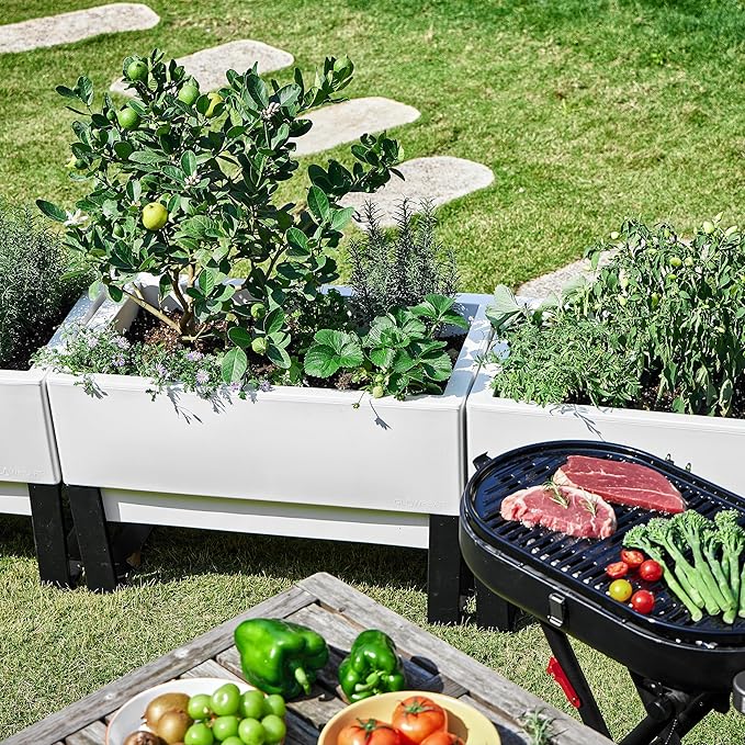 - 【Easily grow the plant&vegetables and herbs you love! 】- No bending required with ideal growing conditions: Pick, prune and water your garden easily due to the raised design with generous 11” soil depth and 16 gal volume to optimize growing; flowers i.e. violas, pansies and daffodils; fruit i.e. tomatoes; vegetables i.e. beans, lettuce and radish; and herbs i.e. basil, thyme and coriander.