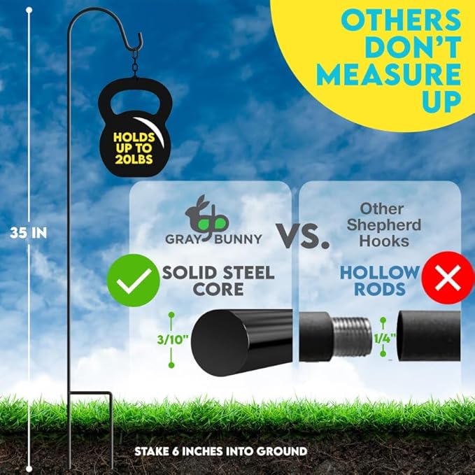 - UNMATCHED STABILITY: Engineered with a solid steel, double-forked design and extra-long base prongs, our Shepherd hooks ensure your decorations stay upright. Perfect for heavy bird feeders, hanging plants, lanterns or wreaths.