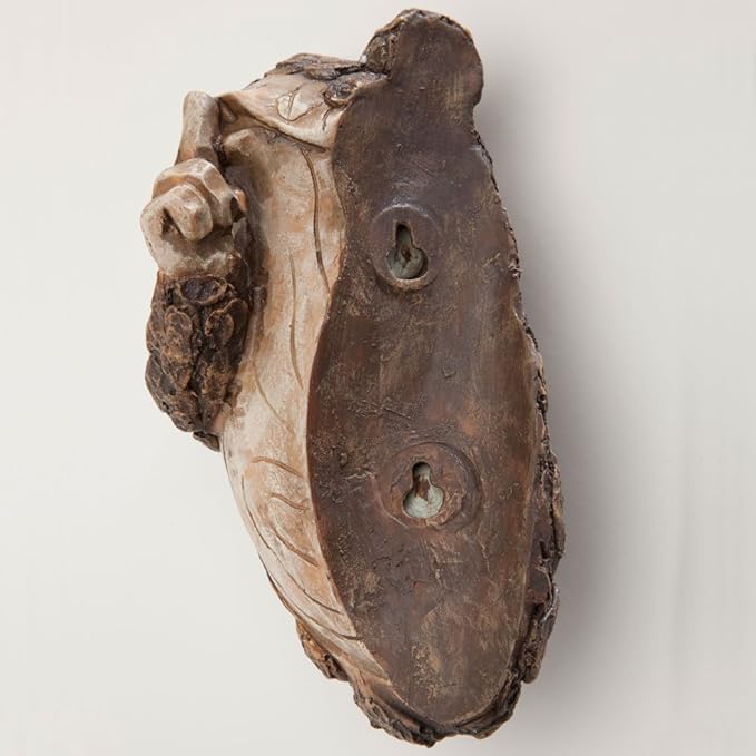 - Sculpted of polyresin, it takes on the appearance of bark and seemingly emerges from the tree trunk with a shushing motion