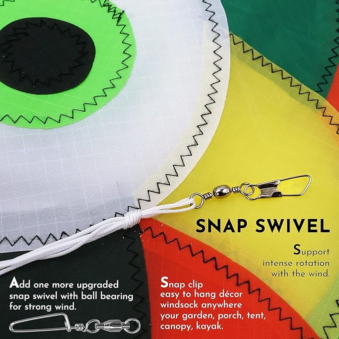 - With the included snap swivels, hanging the windsock is easy. A flagpole for hanging is not a must anymore. You can hang this cute rainbow fish at your will anywhere you'd like to add much vigor and fun, under the branch in your quiet garden, on the porch of the party room, on the antenna of a lonely boat.