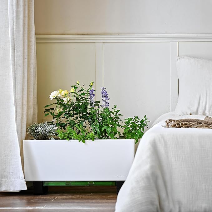 Glowpear Self-Watering Mini Bench Planter - 23.6" in Pot, Free Standing, UV Stable, Scalable, Indoor | Outdoor Pot with Water Gauge, for Home Kitchen Windowsill Gardening