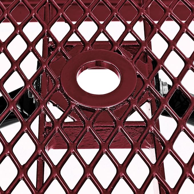 - BUILT TO LAST: Industrial-strength expanded metal mesh seats & tabletop reduces weight without sacrificing strength or durability; Promotes air flow, prevents snow or dust accumulation and limits standing water; Heavy-duty tubular steel frame with integrated anchor tabs is finished in a black powder coat