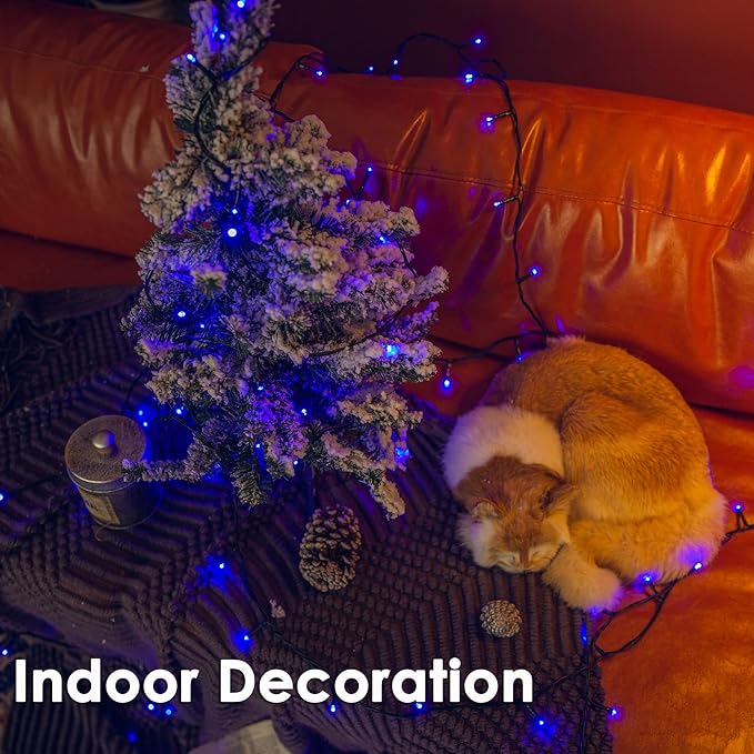 - 【Dark green cable Christmas Tree Light】Perfectly hiding on gardens, plants,and home decoration; 1000pcs blue LEDs up to 336ft/103m total length with 10ft/3m leading wire, space between each LED: 4 inch/10cm.
