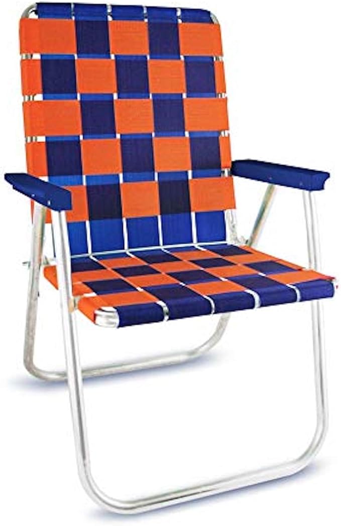 Lawn Chair USA Folding Aluminum Outdoor Patio Lawn Chair | Heavy-Duty Webbed Chairs for Camping, Sports, Beach, Yard & Tailgating | Lightweight Portable | Classic - Blue/Orange