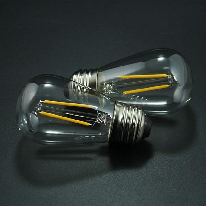 - 💡【Outdoor Replacement Bulb】This 2W S14 LED filament Edison bulb is designed to upgrade E26-based outdoor string lights. 2700K soft warm white color provides a cozy and romantic environment. 20watt incandescent bulb equivalent, more brighter than old 11watt S14 outdoor light bulbs. LED filament technology, vintage look, great for weddings, parties, and garden decorations. 10 times longer lifespan than incandescent bulbs, you won't be disappointed.