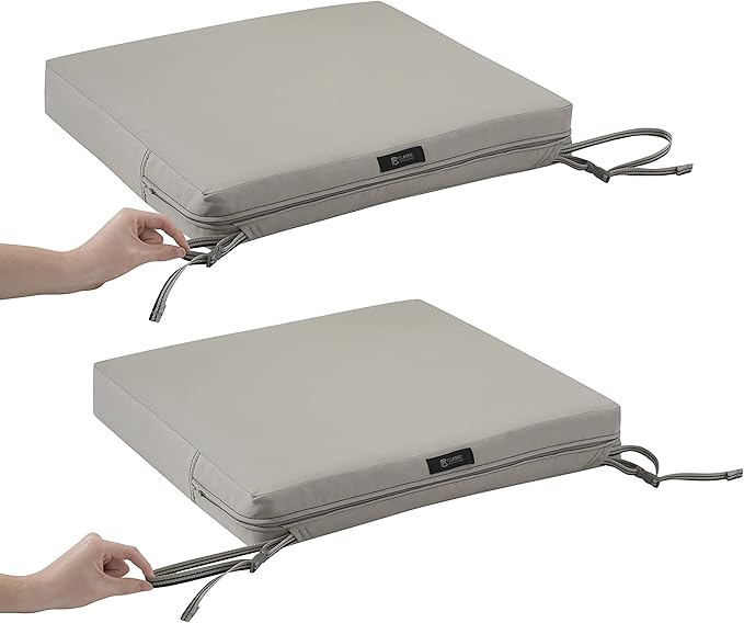 Classic Accessories Ravenna Water-Resistant 21 x 21 x 3 Inch Patio Seat Cushion, Mushroom, Chair Seat Cushion