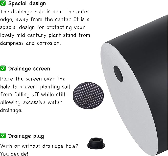 - DRAINAGE PLUG & MESH SCREEN - With a large drainage hole at the bottom of planter pot for appropriate draining, each pot contains a rubber drainage plug, your choice of draining your plants or not. It also comes with drainage mesh screen, place the screen over the hole to prevent planting soil from falling off while still allowing excessive water drainage.