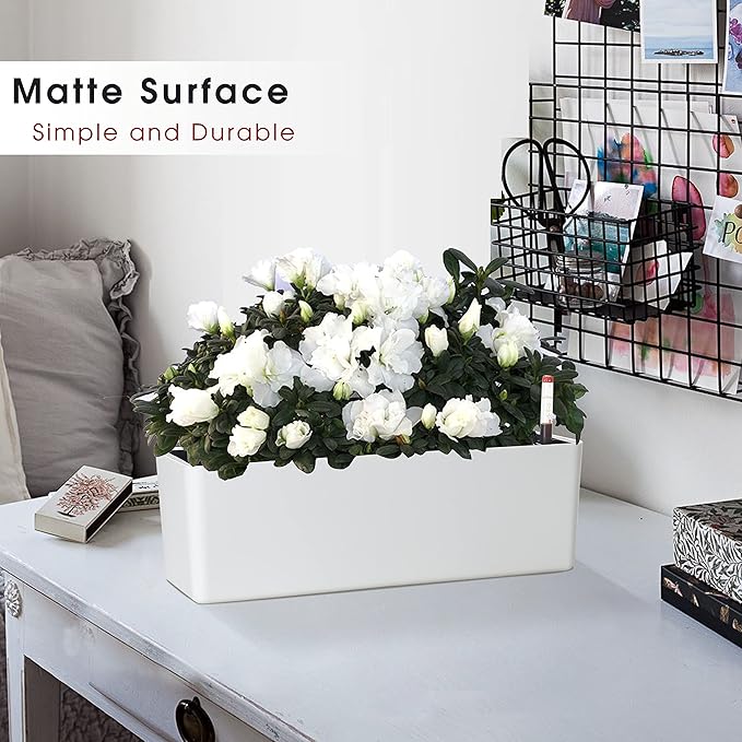 GardenBasix Elongated Self Watering Planter Pots Window Box 5.5 x 16 inch Indoor Home Garden Modern Decorative Planter Pot for All House Plants Flowers Herbs (White,1-Pack)