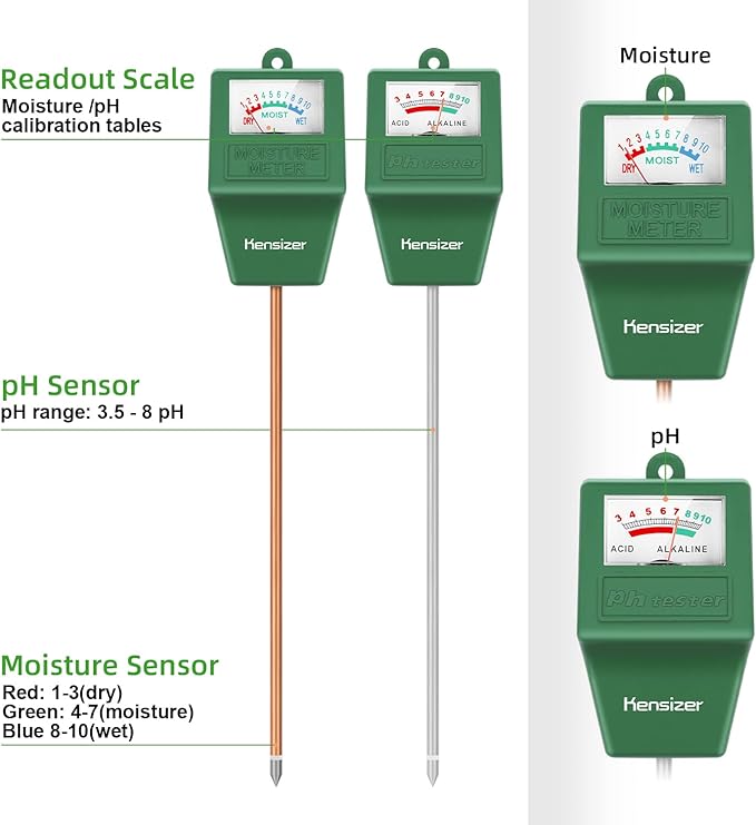 - Moisture/pH Testers in One Set - Clear reading dashboard with arrow pointer, wide scale interval, and large number. Lightweight and portable, making it convenient for on-the-go testing.