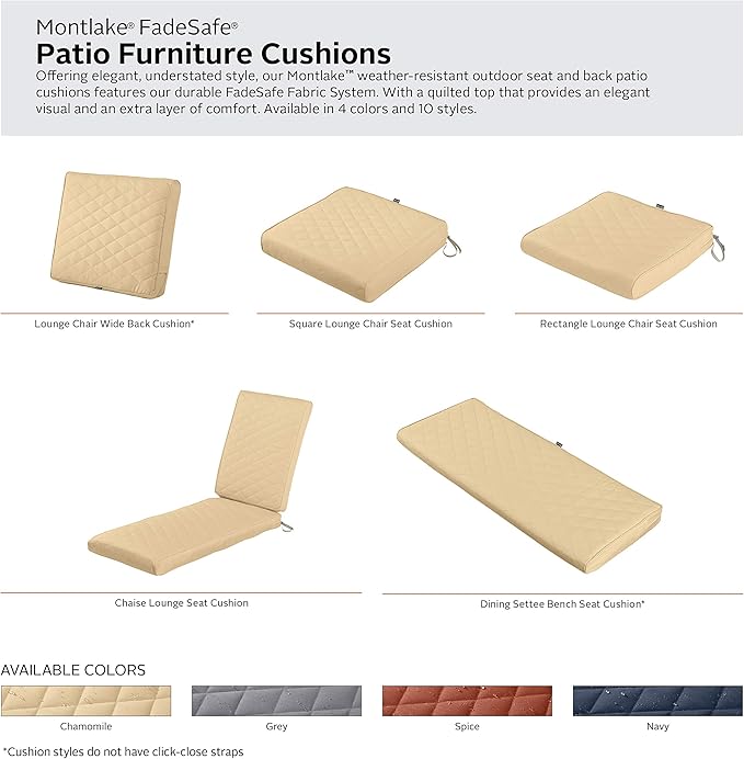- MONTLAKE FADESAFE FABRIC SYSTEM: Montlake FadeSafe fabric is a solution-dyed fabric that is resistant to fading; a water-resistant coating and backing resists stains and helps keep rain out; quilting adds an elegant touch to your seat