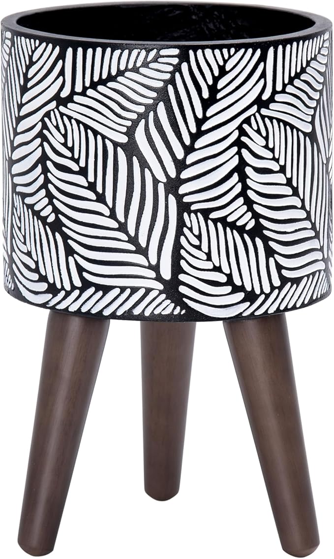 - What’s included: planter pot with drainage hole, drainage plug, set of stand – 3 solid wooden legs.