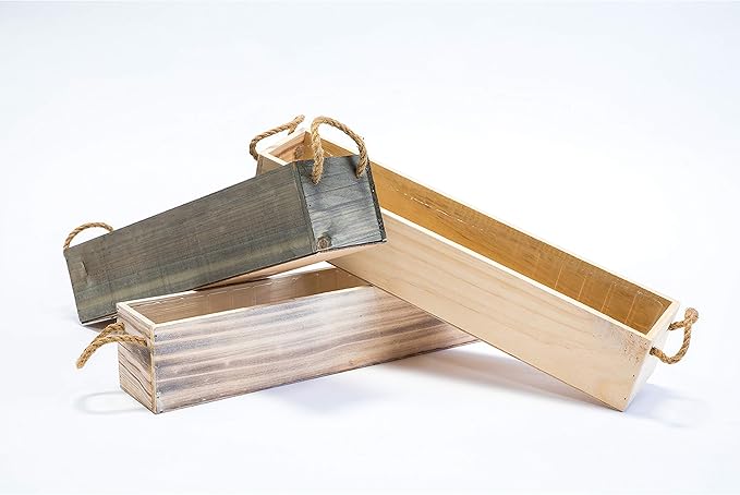 20" Rectangular Rustic Wood Planter with Handle and Plastic Liner l Rustic Whitewash l Country Style, Home and Wedding Decorations, Garden Ornaments (20x4 w Handle Set of 2, Whitewash)