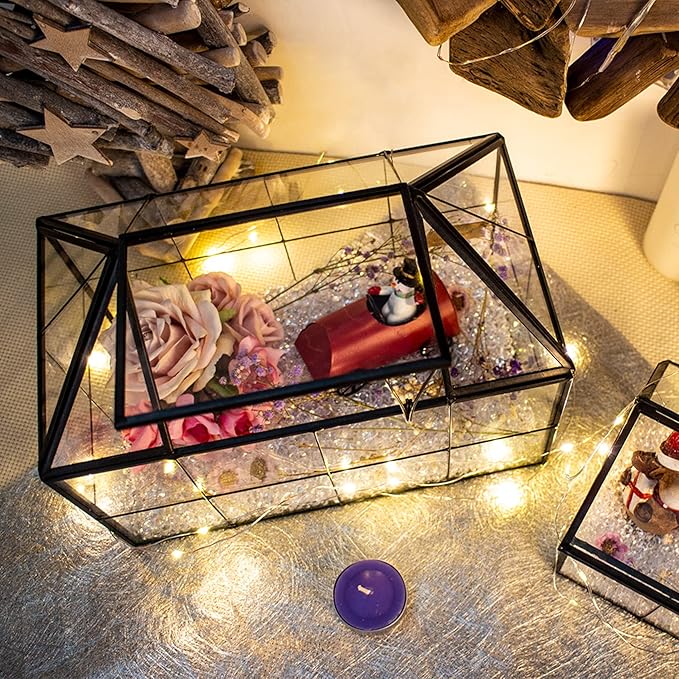 - 【Lead-free Material】This tabletop glass terrarium Made of ultra clear sodium calcium glass with brass frame, which is lead-free, sturdy, durable. We promise not to use any materials harmful to the human body
