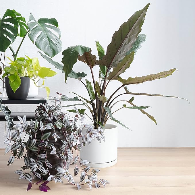 - Drainage holes and detachable/perfectly fitting ceramic saucers included.