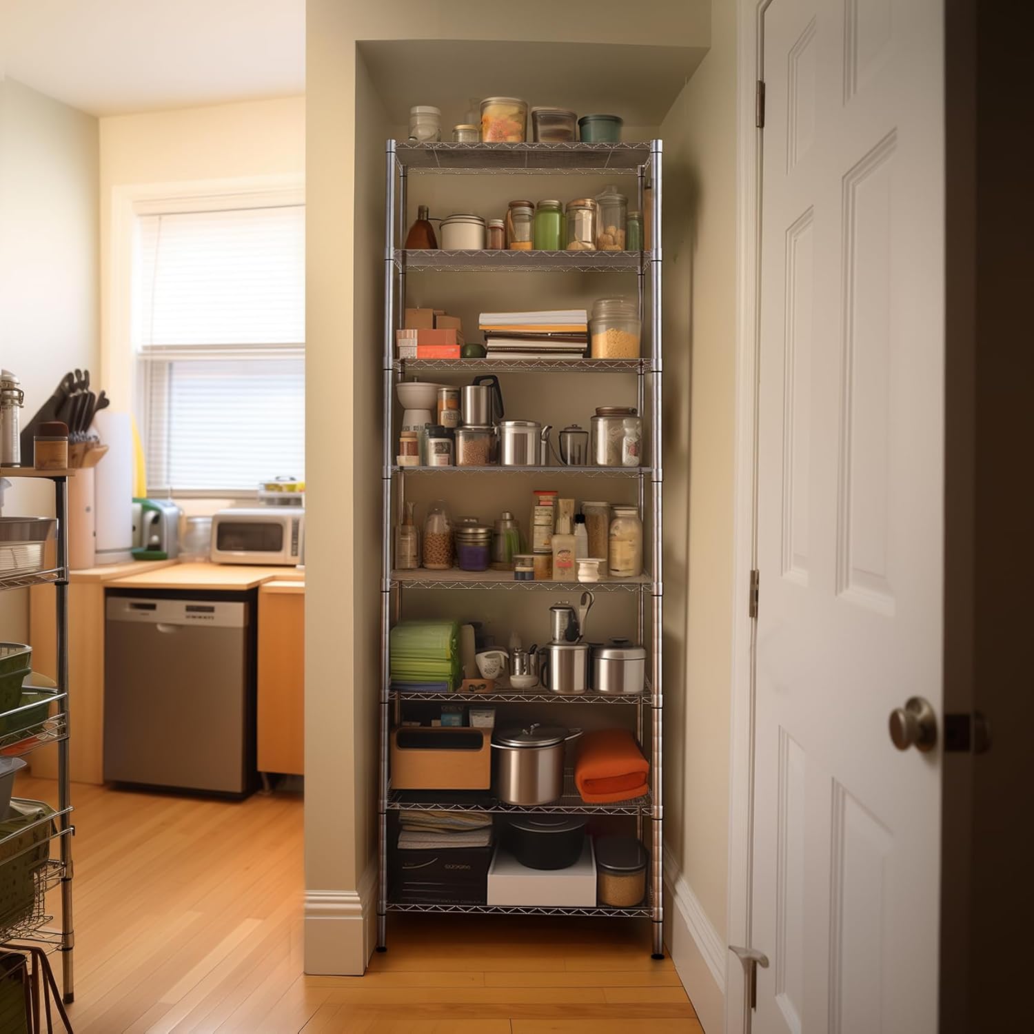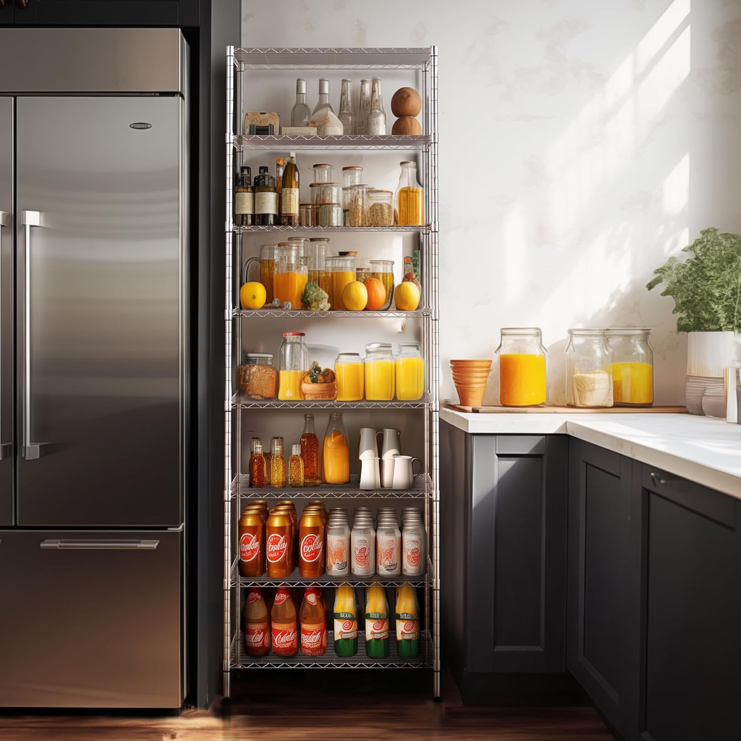 - UPDATE & OPTIMIZE - A lot of customers who bought our 6 tier wire shelving rack want to make the rack higher, so we have developed a new shelf which are 72 inches height and have 8 shelves, you can use all 8 shelves to maximize your storage space or two 4 tier units to make your storage space more flexible. Let's diversified storage and easy access in kitchen, office, garage and more.