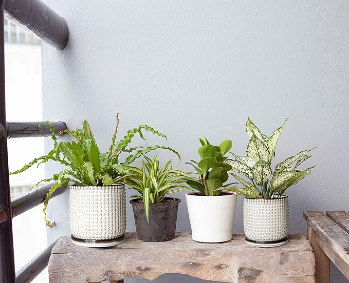 - Drainage Hole & Matching Saucer: Each pot comes with pre-drilled drainage hole and perfectly matching ceramic design tray for small amount of excessive water drain.