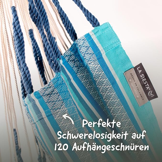 LA SIESTA® - XL King Habana Cotton Hammock Chair & CasaMount - Hanging Chair w/Suspension Kit for Walls Ceilings & Square Beams - Indoor Outdoor Swing Hanging Chair Bedroom Patio Balcony - Azure