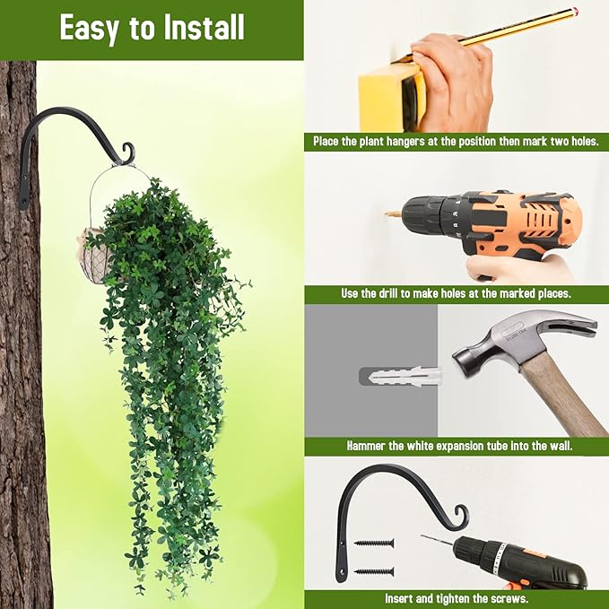 - 【MUTI-PURPOSE】 Heavy-duty hanging plant brackets are ideal for hanging large bird feeders, heavy lanterns, flower pots, baskets, wind chimes use. Whether indoor or outdoor, they can bring you beauty and elegance.