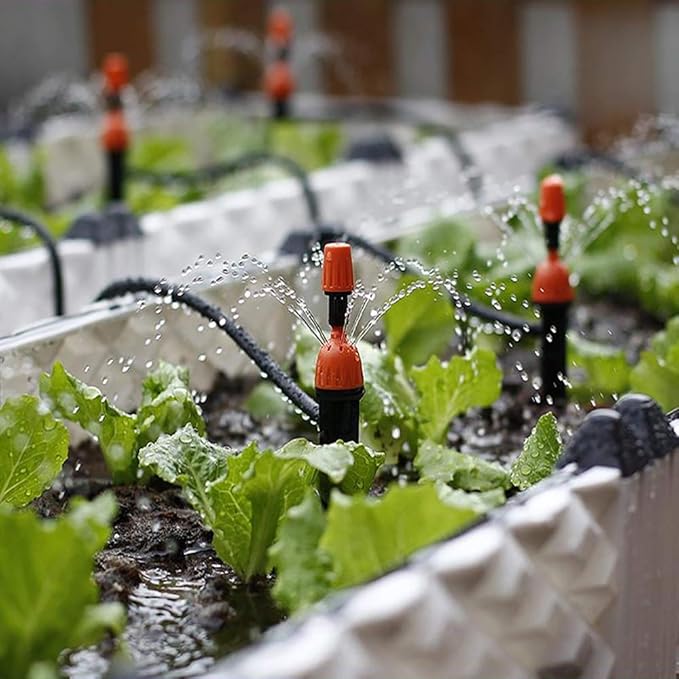 - ✔New Upgraded: Upgraded irrigation system dripper. The dripper and fixed rod are combined into one, the installation is more convenient, simple and fast Adjustable spray or drip irrigation modes, which allow each plant to be well looked after.