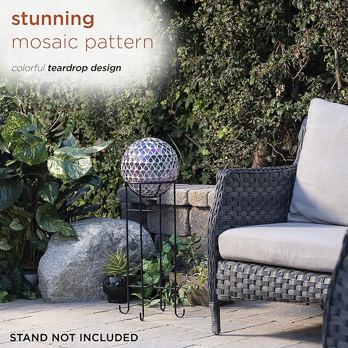 - OUTDOOR GARDEN DÉCOR: Gazing globe is made from multi-colored iridescent glass pieces, and provides a unique and decorative addition to your home's interior or exterior décor with its mosaic design