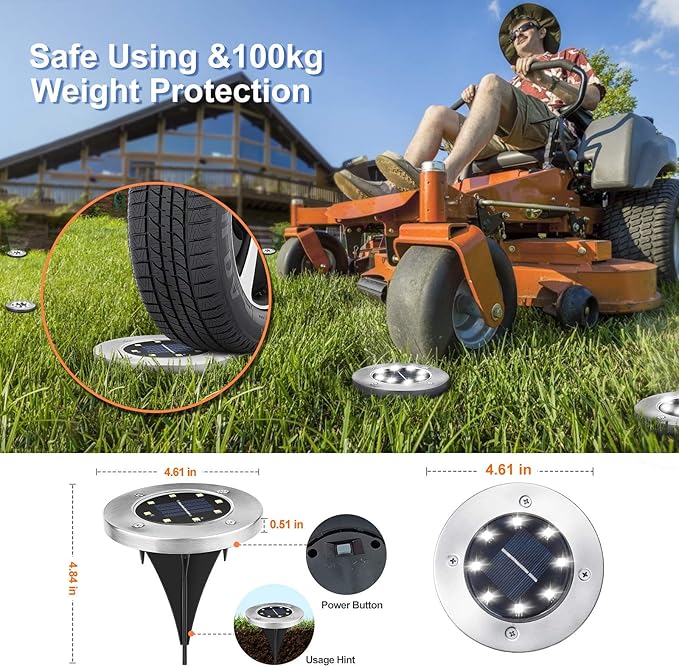 - Easy To Instal: Each light has two spikes, Turn on the switch under the cap and push the spikes into the soil with the spikes; If the ground is too hard, do not hammer it with force; Soften the ground with water, dig a suitable hole for the spike