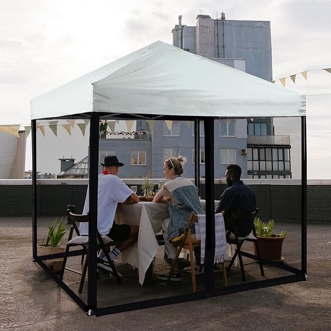 - Mosquito Net With Zipper Design: The mosquito net covers four sides. The ultra-fine mesh of the gazebo screen keeps out even the tiny 'visitors', while you can comfortably enjoy inside, and the zippered entrance allows you easy access and out.