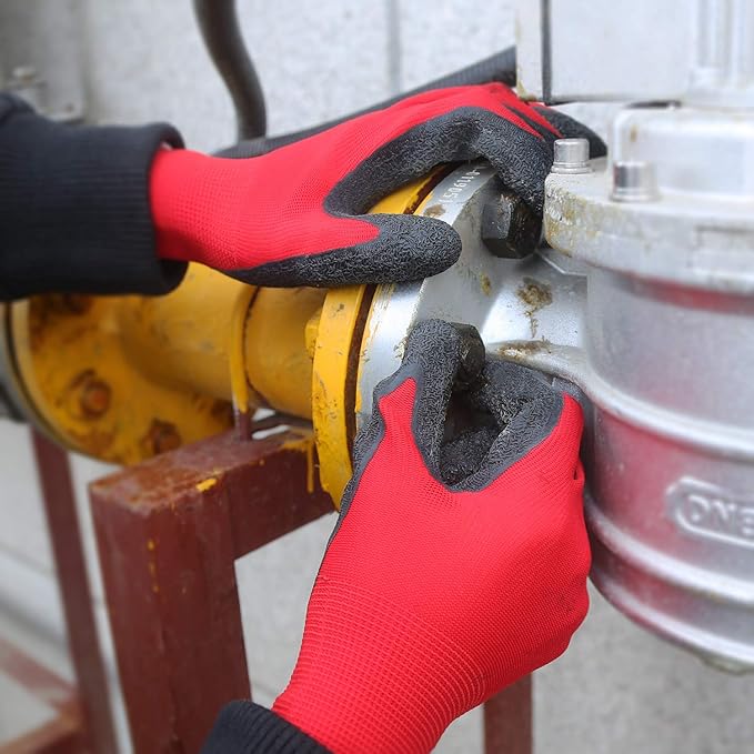 Evridwear Crinkle Latex Rubber Hand Coated Safety Work Gloves for Men Women General Multi Use Construction Warehouse Gardening Assembly Landscaping (L-Size) 12 Pairs Pack