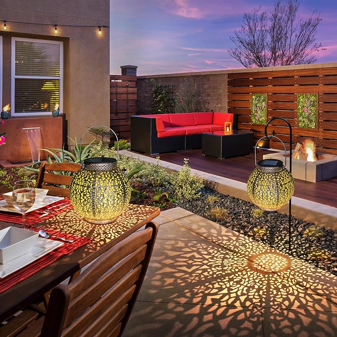 - Multiple Occasions Use: The solar lanterns can be used as hanging lanterns or table lights. It is a stunning outdoor decorations for your patio, garden decor, yard,fence, flower bed, camping, party, wedding and holiday gift for your grandma,grandpa,mom,dad, sisters and brothers,friends