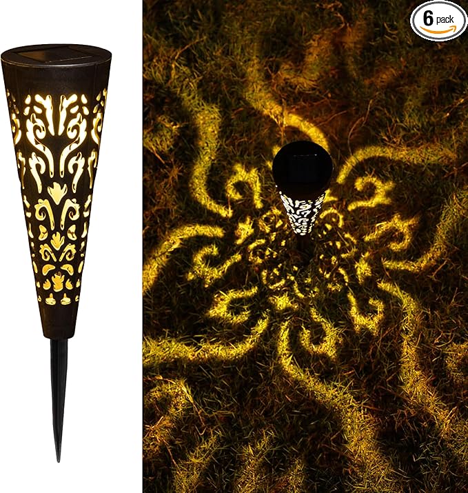 Go2garden 6Pcs Solar Lights Outdoor Garden Decor Gifts for Women Mom,Yard Decorations, Conical Garden Stakes for Patio, Lawn, Pathway, Landscape Lights Mothers' Day Birthday Gifts for Men(Black)