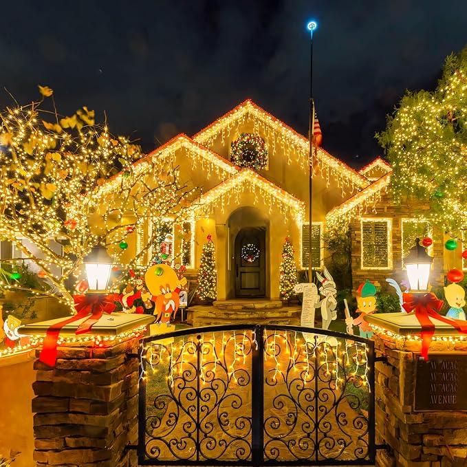 - Best Indoor & Outdoor Decoration: Waterproof(IP44) icicle lights are perfect for indoor and outdoor, Christmas, party, wedding, Roof, living room, home, window, festival, Holiday etc.This icicle lights will make your life lovely. Please note that the plug should be protected from water.