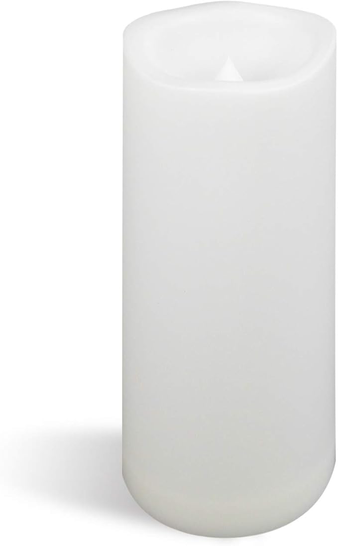 - Truly waterproof and large sized outdoor candle. The plastic battery candle is waterproof and designed for outdoor use to decorate your garden, yard, patio, swimming pool, or an outdoor activity such as a BBQ party. The resin candle can be used indoor to decorate your fireplace and rooms. The LED candle is measured 4” in diameter, 10” in height and suitable for large hurricane lantern and whenever big outdoor candles are needed. Unlike wax candle, plastic candle never melts when used outside.