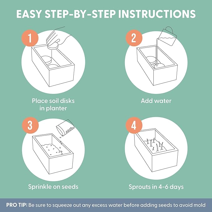 - Cat Plant Magic: Add a soil disk, a splash of water, and a sprinkling of seeds, and watch your cat grass planter kit sprout like magic. Read our Cat Ladies insert for easy-to-follow instructions and growing tips, and watch your organic cat grass sprout up to 4โ in just 4โ7 days. No green thumb required.