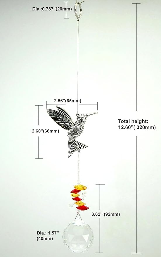 - Prisms: 40mm clear faceted crystal ball & themed multi color super thin edge crystal prisms cascade echoing the higher above metal motif charm, ended with a diameter 2cm stainless key ring at the top for easier hanging