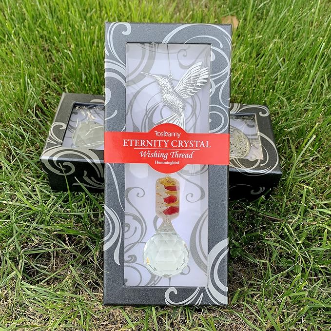 - BEST FOR GIFT: *Well designed & high quality gift box* A great gift for your family, friends as well as yourself. Featured a see-through window and a conspicuous themed color paper band, the superior and chic pearl paper gift box is especially designed to well present and highlight the eye-catching crystal hanging decoration. Meaningful wishes corresponding to the crystals & the individual metal charm printed on the bottom of the gift box to express your best wishes to your beloved ones
