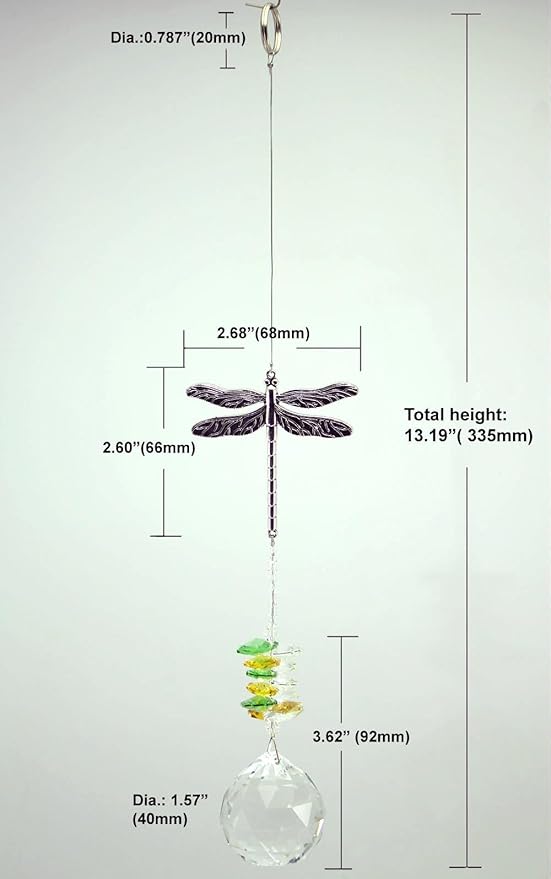 - Prisms: 40mm clear faceted crystal ball & themed multi color super thin edge crystal prisms cascade echoing the higher above metal motif charm, ended with a diameter 2cm stainless key ring at the top for easier hanging