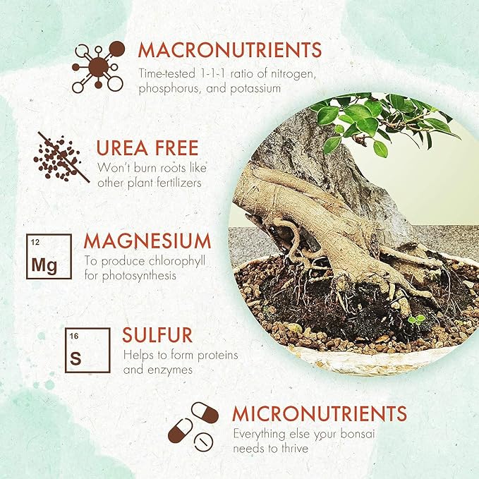 - MADE WITH YOU IN MIND - Find your Zen. Our fertilizer is expertly formulated top to bottom in delivering your bonsai tree the best nutrition possible while giving you peace of mind that you are keeping your delicate tree happy and healthy.