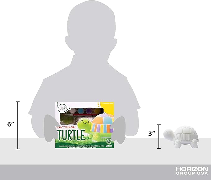 - Complete kit has prepped turtle, paints, and brush for imagination and creativity