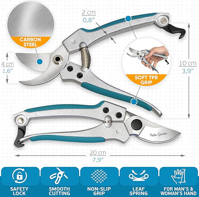 - ✅ PLANT ALL YOU WANT - Our planting trowel and spade cultivator comes with heavy duty alloy steel blades while our bypass pruner is made with strong carbon steel. This makes each tool sturdy for daily use.