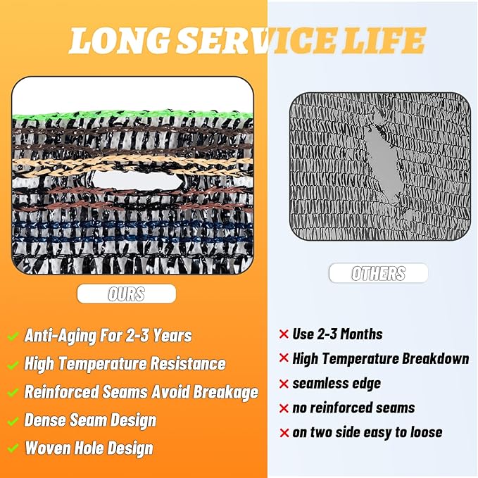 - 【Special Woven Hole Design】Made with new high density polyethylene (HDPE) material which Provides extra convenience for installation, garden shade cloth can block 55% of the sun and provide UV protection.