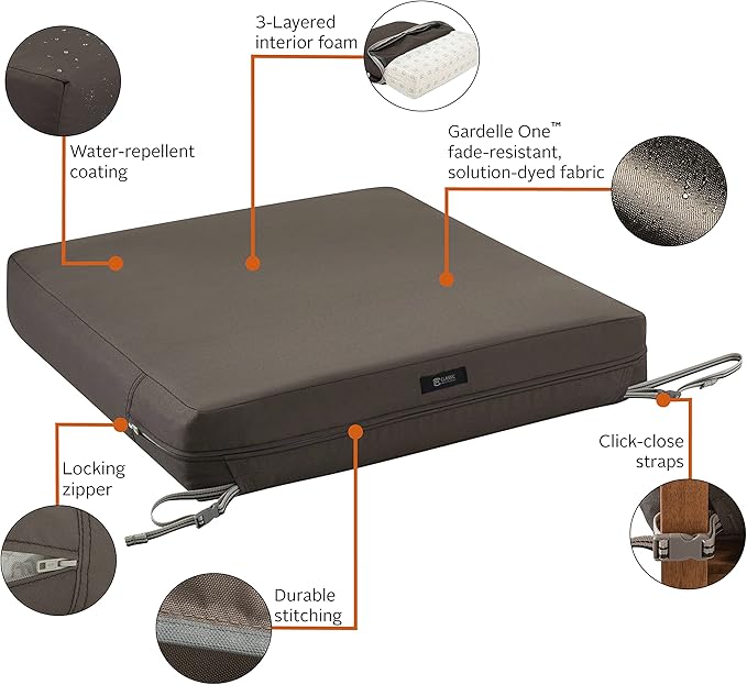 Classic Accessories Ravenna Water-Resistant Patio Lounge Chair/Loveseat Cushion, 25 x 27 x 5 Inch, Dark Taupe