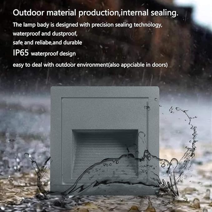 - Good quality: Gray shell, warm white 3000K, aluminum corner staircase light step light, IP65 waterproof, suitable for indoor and outdoor; IP65 can prevent the splashing water, but cannot be installed directly under water