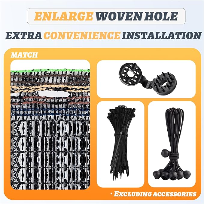 - 【Special Woven Hole Design】Made with new high density polyethylene (HDPE) material which Provides extra convenience for installation, garden shade cloth can block 55% of the sun and provide UV protection.