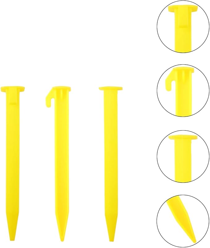 - MULTIPURPOSE: Our plastic tent spikes are made to be the perfect solution for holding things down outdoors. The pegs are perfect for anchoring your camping tent, garden netting, rain tarp, gazebos, lawn edging, canopy, dog fence, and more. They are 6 inches long to hold items deeper and stronger.