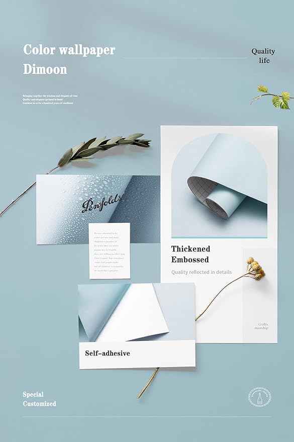 Dimoon 118''x17.7'' Blue Peel and Stick Wallpaper Contact Paper Modern Self Adhesive Wall Paper Removable Renter Friendly Textured Solid Color Shelf Cabinet Vinyl Roll (118''x17.7'',Light Blue)