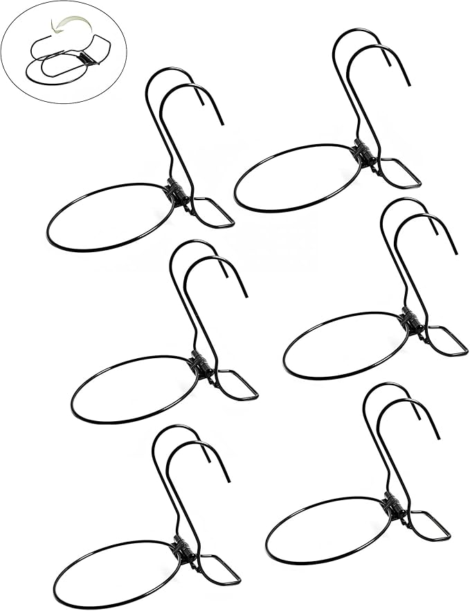 6 Pieces, 6 inches Iron Hanging Flower Pot. Metal Plant Wall Hanger, Vertical Garden. Planter Hook Ring, Rail Metal Fence. Indoor and Outdoor. Yard Garden. Wire Trellis. Collapsible Bracket. (Black)