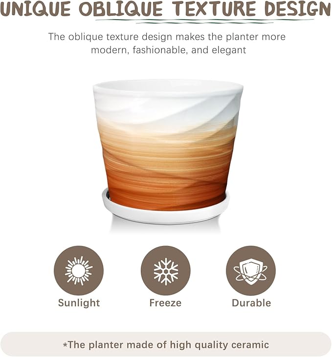 - 【High Quality Ceramic】The indoor plant pots is made of ceramic, glazed inside and out, with enough weight to make it more durable by not tipping over. It can withstand strong sunlight and cold temperatures indoors or outdoors.
