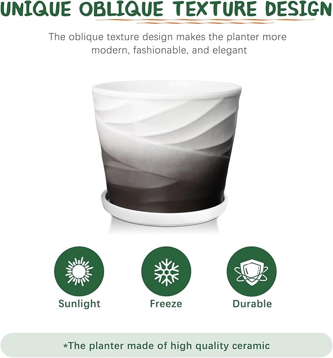 - 【Decorate Plants and Homes 】The combination of traditional craftsmanship and fashion design creates the unique style of this ceramic plant pots. Using only simple modern black and white colors, simple lines can decorate your space.