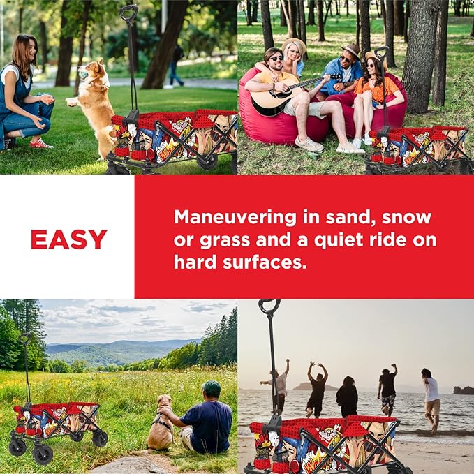 - ✔️TRAVEL READY: Folds up compact and unfolds in seconds flat with no tools required. When you’re all done fold the wagon up and put it in your trunk for your next destination or store it away in your closet or garage until next time.